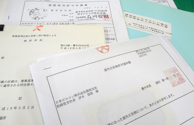 広告物・工作物・道路占用などは、設置するにあたり調査や役所への申請が必要な場合がございます。設置に伴う申請や手続きは、弊社が代行致します。