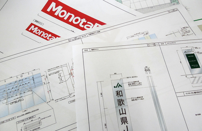 素材や加工方法などを決定し、お客様のイメージと比べて違いが無いよう、設計・レイアウト作業を行います。